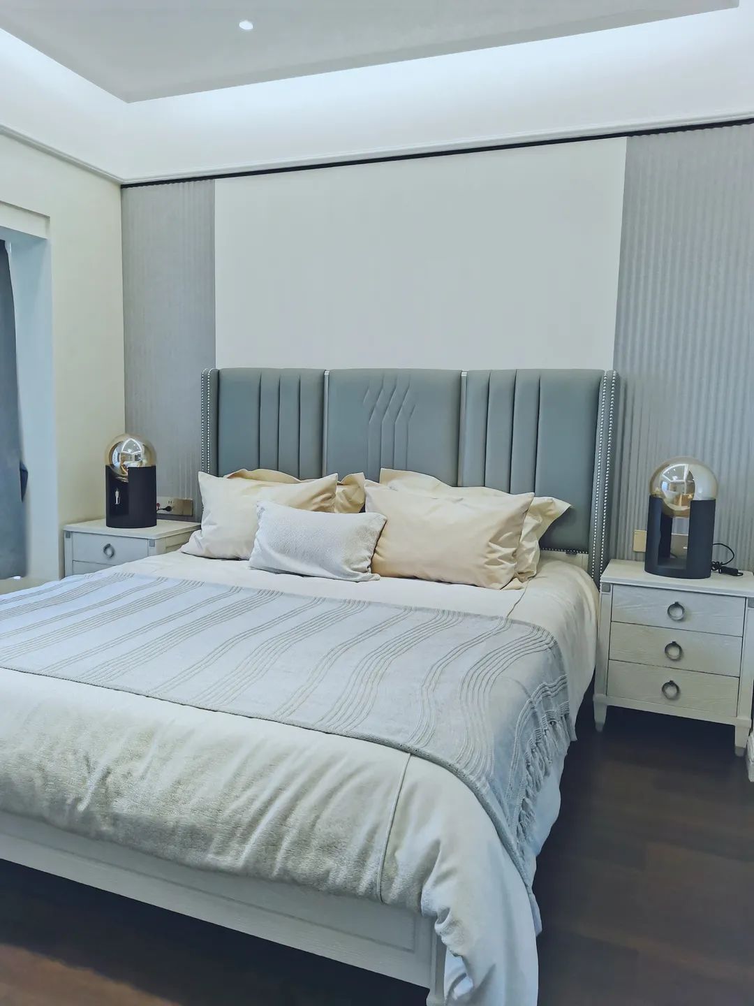 床头硬包背景和空间留白的设计手法,